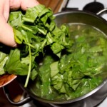 Gotowanie: Do gotującego się wywaru wrzuć najpierw posiekane łodyżki szpinaku i gotuj kilka minut. Następnie dodaj pokrojone w kostkę warzywa korzeniowe oraz ziemniaki. Gotuj, aż warzywa będą prawie miękkie (al dente).