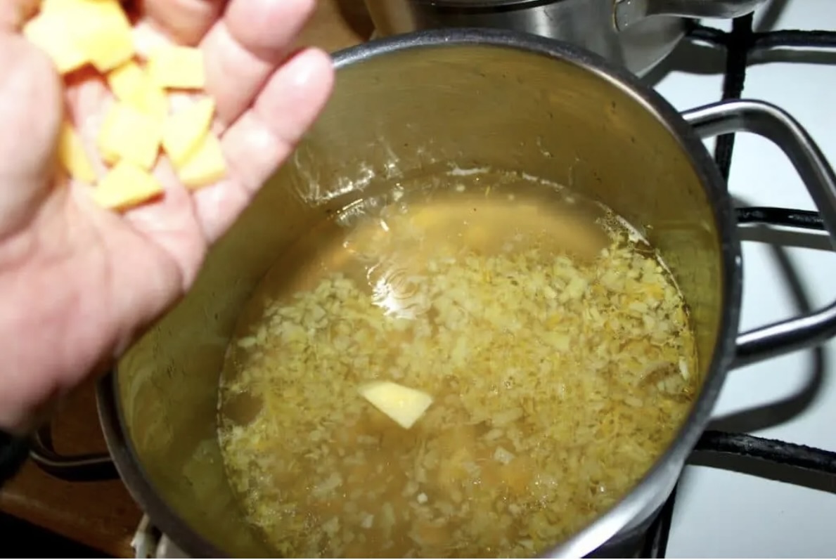 Ponownie przykryj garnek i gotuj zupę przez 10 minut.