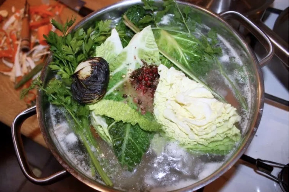 Przygotuj bazę: Jeśli nie masz gotowego bulionu, ugotuj go na kurczaku z warzywami i ziołami. Po ugotowaniu wyjmij mięso z wywaru.