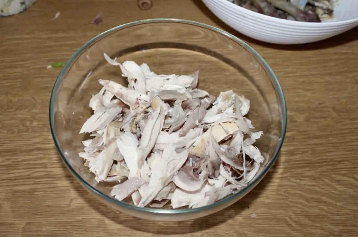 Mięso: Ugotowany kurczak z bulionu.