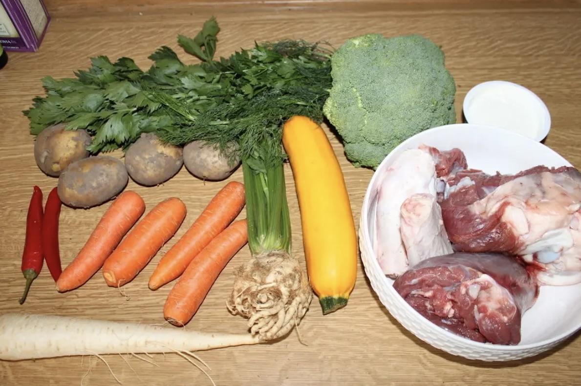 Mięso i kości: gicz cielęca (ok. 1,5 kg), 1 noga cielęca (kości).