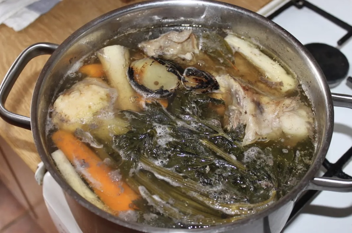 Gdy mięso jest gotowe, wyjmij je wraz z kośćmi i włoszczyzną z wywaru.