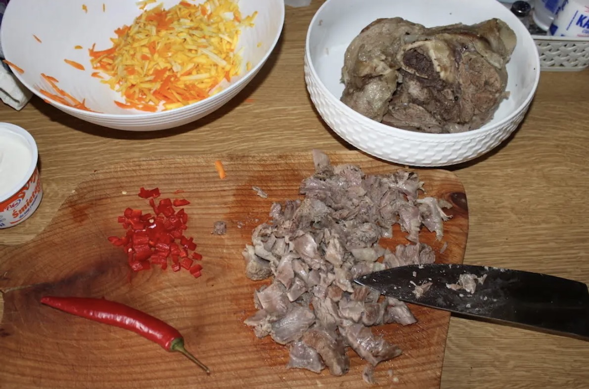 Oddziel mięso od kości, pokrój je drobno i dodaj do zupy.