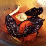 Warzywa: 2-3 suszone papryczki pasilla, 2-3 pomidory, 1 mała cebula (lub pół większej), 2-4 ząbki czosnku.