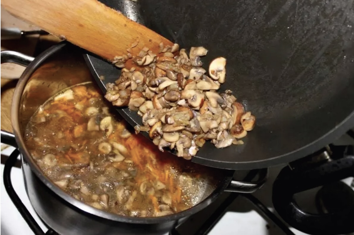 Rada: Użycie brązowych pieczarek sprawia, że smak zupy jest bardziej wyrazisty i aromatyczny niż w przypadku zwykłych białych grzybów.