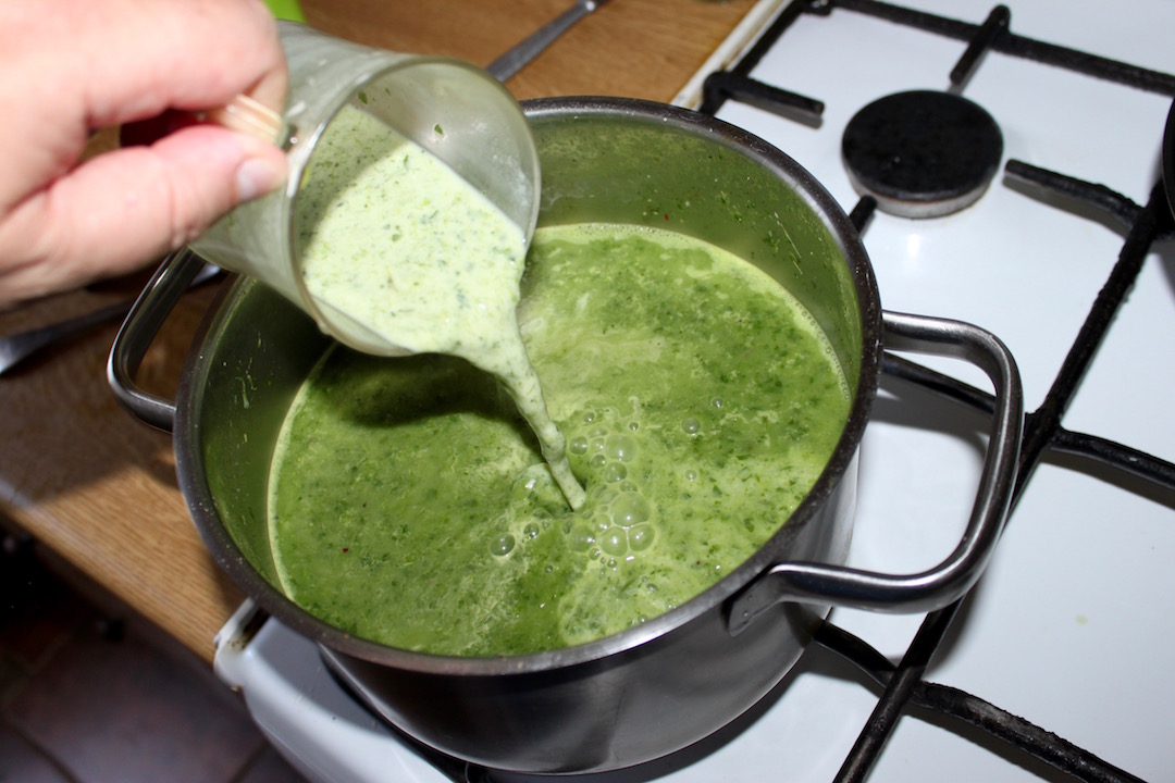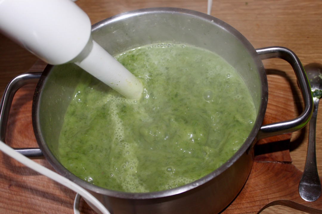 Miksowanie: Zdejmij garnki z ognia i bardzo dokładnie zmiksuj zawartość blenderem na gładki krem. Dopraw solą i świeżo zmielonym pieprzem.