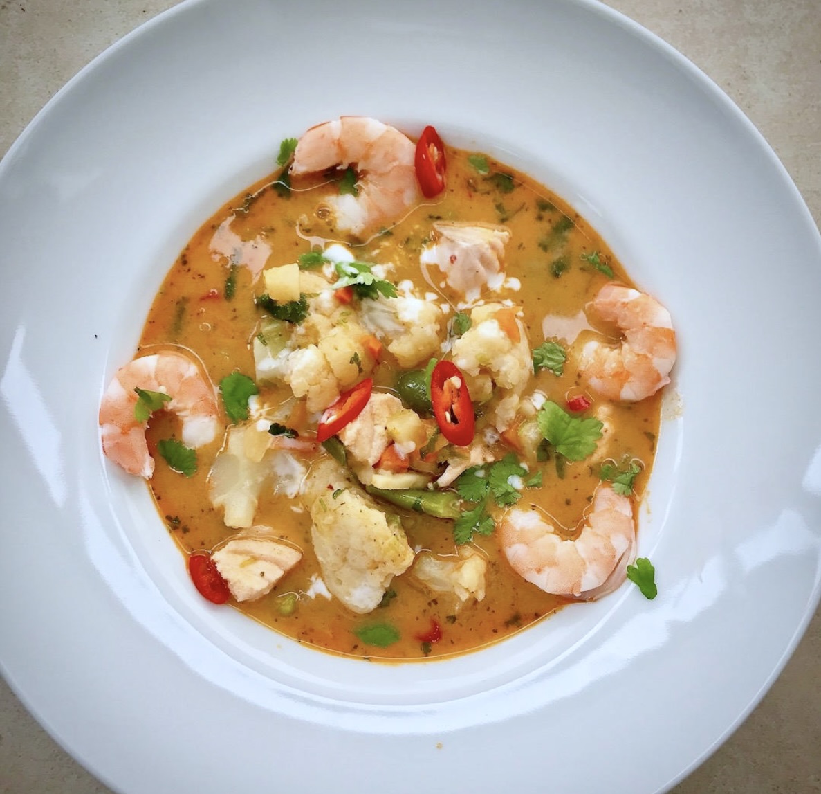 Podanie: Podawaj posypaną świeżą kolendrą, papryczką chilli i skropioną dodatkowo mleczkiem kokosowym.