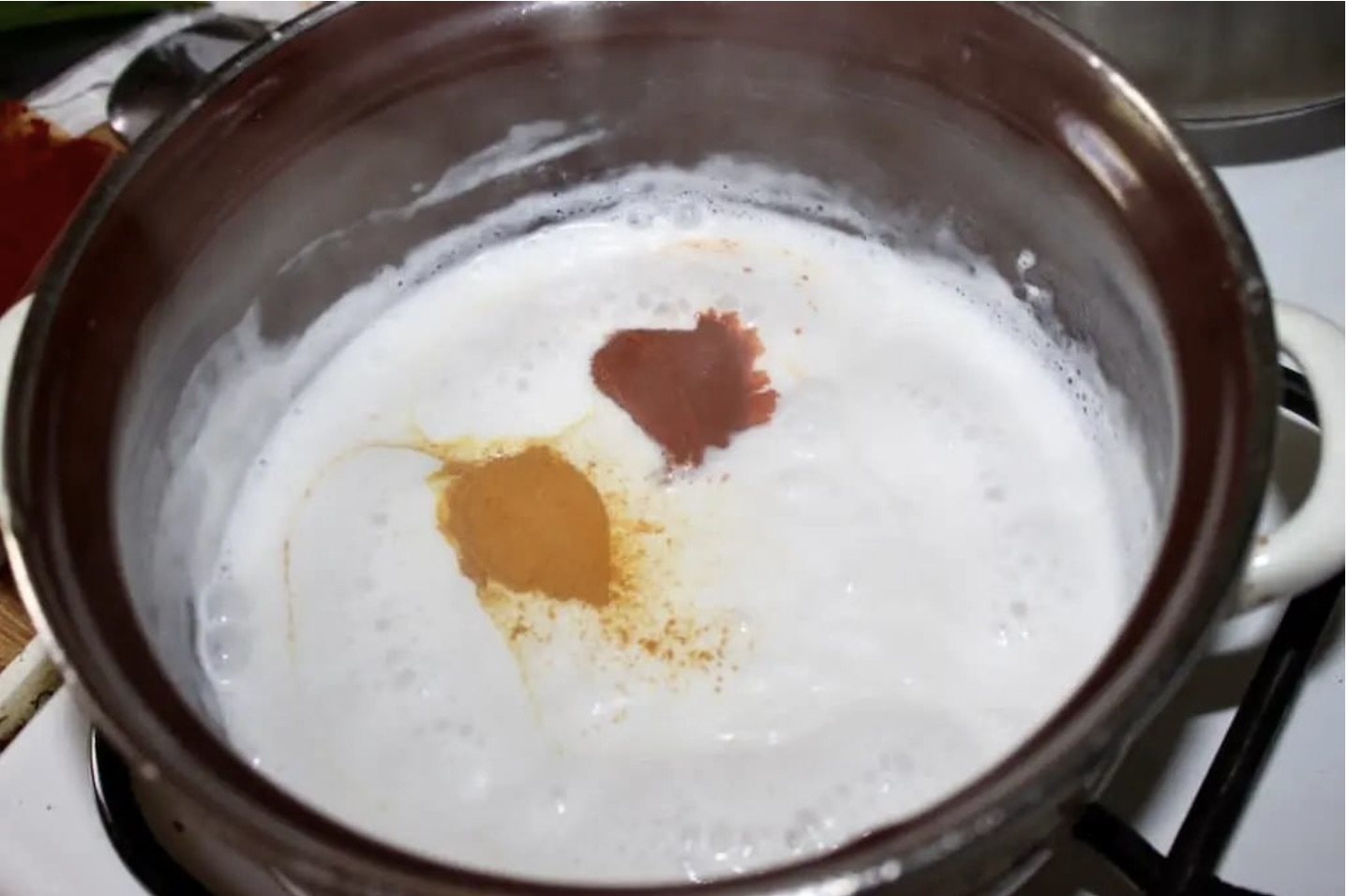 Do garnka wlej pół puszki mleczka kokosowego i zagotuj.