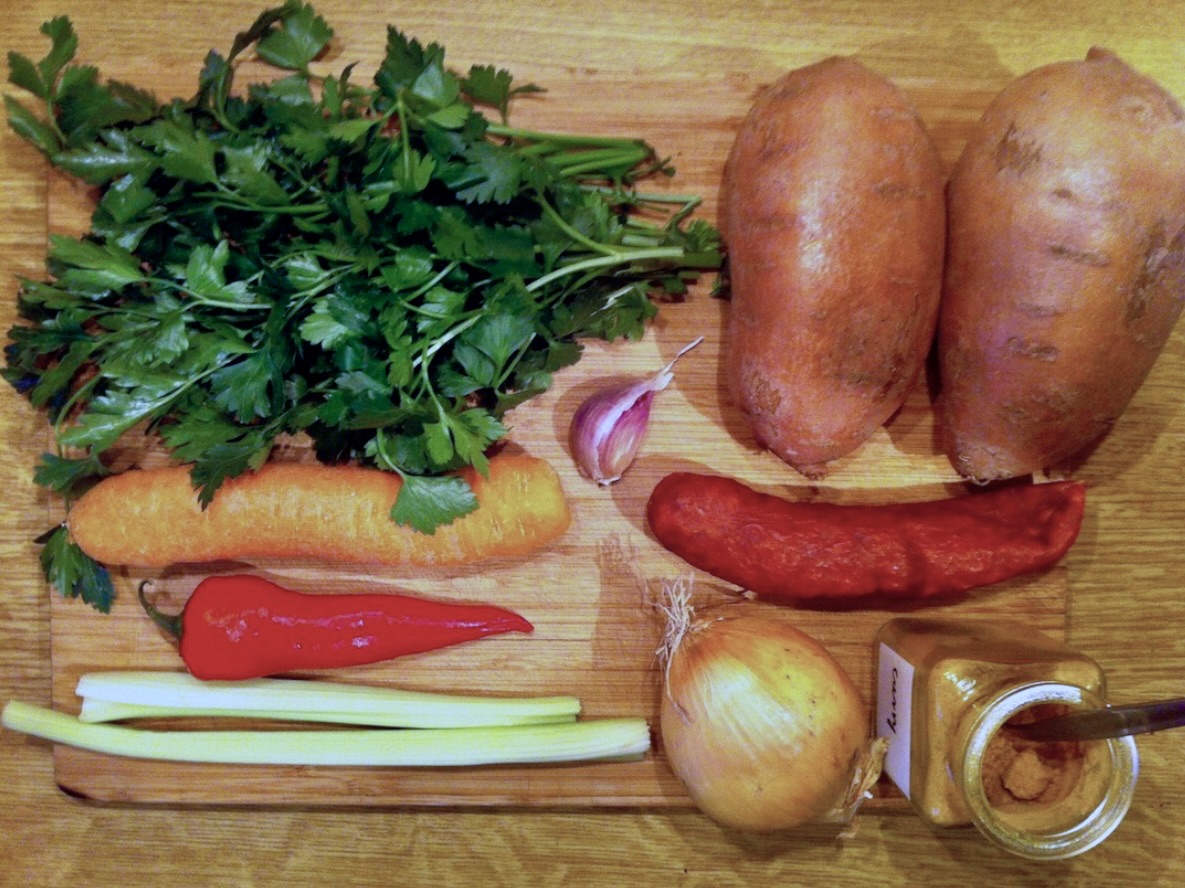 Aromatyczna zupa z batatów, paprykowanej kiełbasy chorizo, kilku warzyw i przypraw zmiksowana na koniec i podana ze świeżą kolendrą. Zupa z batatów to jedna z moich ulubionych zup. Jest szybka w przygotowaniu, a jednocześnie sycąca i pełna smaku i aromatów. Najlepiej jest zajadać ją niezbyt mocno zmiksowaną, aby pozostawić w całości kawałki chorizo. O ile chorizo można zastąpić inną, paprykowaną kiełbasą (np. węgierską paros kolbasz), to zastąpienie batatów tradycyjnymi ziemniakami mija się z celem. Bataty nadają bowiem tej zupie słodyczy, a kiełbasa ją podkręca. Zupa z batatów to wyjątkowa zupa również dzięki charakterystycznej przyprawie. Jakiej? Zapraszam do przepisu. Bo najważniejszy jest smak.