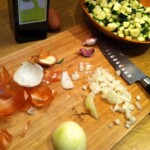 Cukinie umyj, osusz i pokrój w dość małą kostkę. Nie musisz ich obierać.