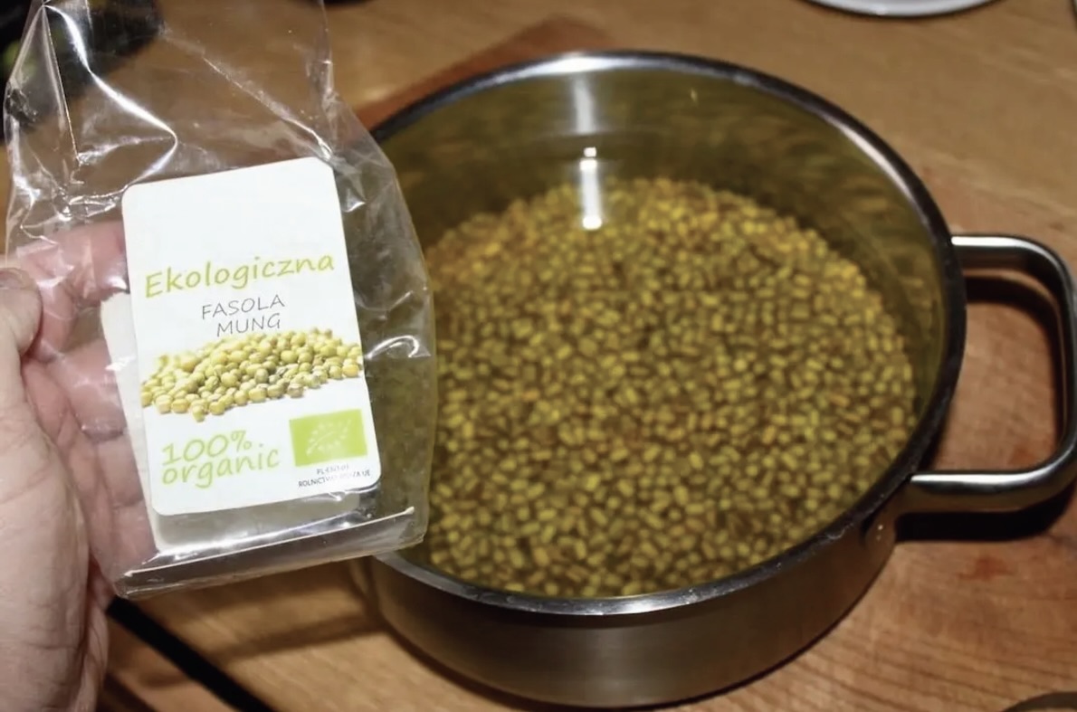 Namaczanie: Fasolę mung zalej przegotowaną, ostudzoną wodą i odstaw na noc do namoczenia.