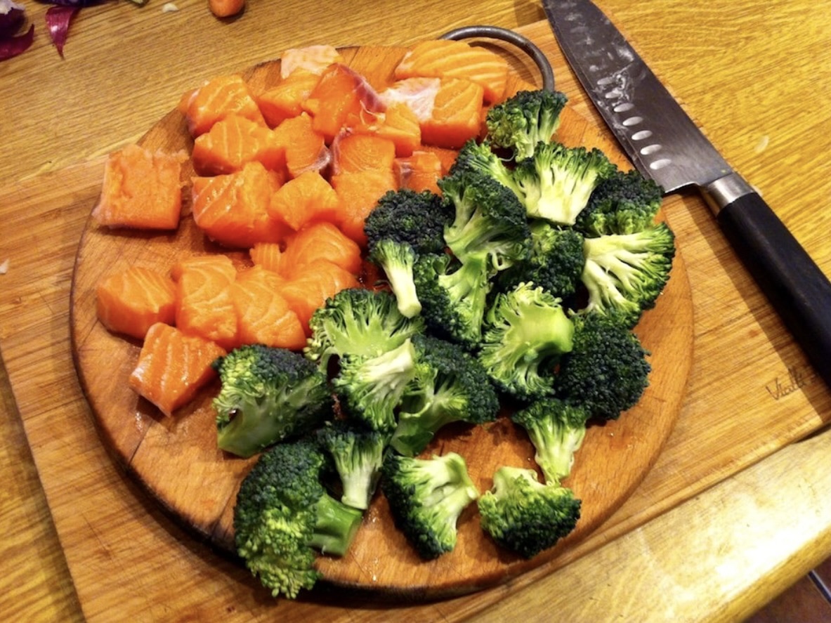 Przygotowanie ryby: W międzyczasie pokrój łososia w dość duże kawałki (aby nie rozpadł się w zupie).