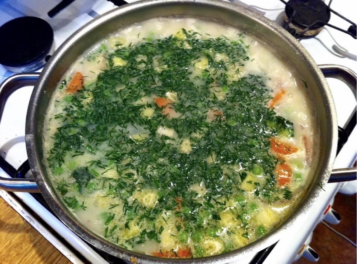 Finał: Do zabielonej zupy wrzuć kawałki łososia oraz posiekany koperek. Natychmiast wyłącz ogień pod garnkiem, a następnie pozostaw zupę pod przykryciem na około 3 minuty. W tym czasie ciepło zupy wystarczy, by ryba była idealnie ugotowana i soczysta.
