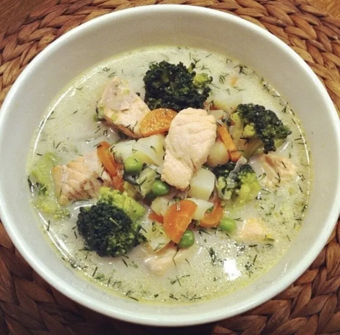 Oto przepis na fińską zupę z łososiem i warzywami (znaną jako Lohikeitto). Jest to sycąca zupa rybna, tradycyjnie zabielana mlekiem i śmietaną, z dużą ilością koperku.