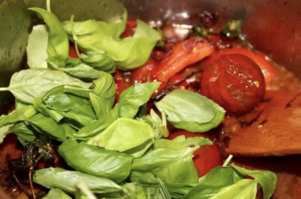 Pomidory: 1,5 kg różnych rodzajów (warto wybrać różne kolory i kształty, część może być z gałązkami dla aromatu)