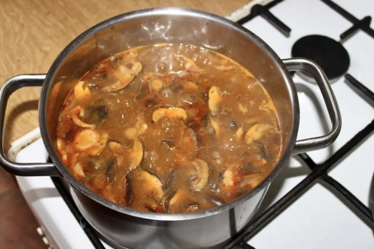 Wskazówka: Odrobina mielonej słodkiej papryki dodanej podczas smażenia świetnie poprawia kolor i smak zupy ze świeżych grzybów leśnych.